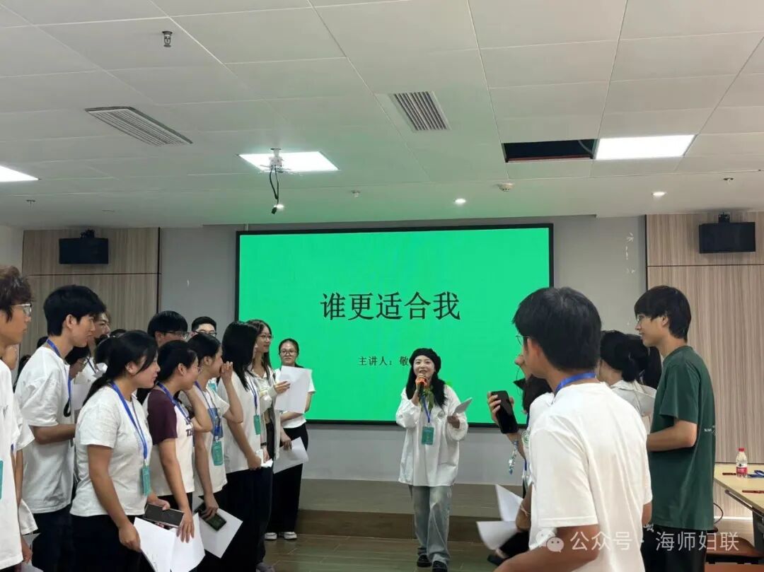“任凭弱水三千,我只取一瓢饮。”适合自己的才是最好的。敬洋同学主持的“谁更适合我”环节,创新性地让同学们挑选在选择对象的中五个最重要的优点以及难以容忍的缺点,并通过词语删减、提问分享的方式,激发了同学们内心深处对于情感选择的深入思考和热烈交流。同学们在这个过程中,逐渐清晰了自己在恋爱关系中的价值取向和情感需求。