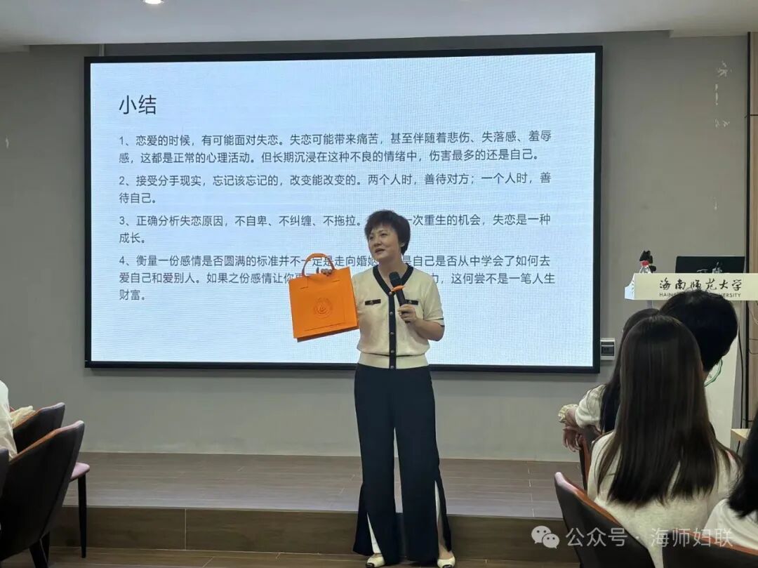 “梧高凤必至,花香蝶自来。”活动的尾声,刘利利主席进行了全面而深刻的总结。她强调,在同学们丰富多彩的青春生活中,爱情固然是其中绚丽的一部分,但绝不能忽视亲情的温暖、事业的追求、朋友的陪伴以及自我提升的重要性。在寻找爱情的过程中,同学们务必坚守自我,保护好自己,用关爱滋养心灵,同时要将更多的注意力放在自身能力的提升上,以实现全面的发展。