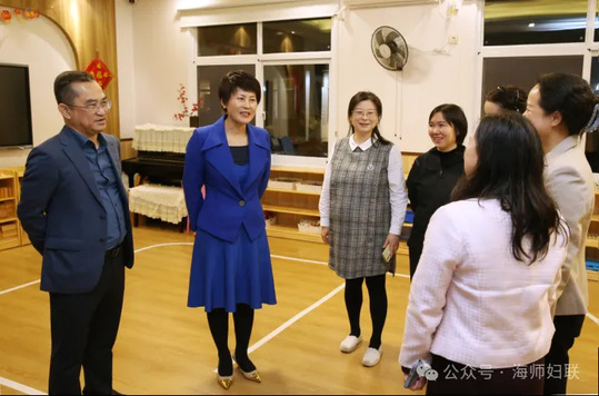 陈健娇主席一行先后来到海南师范大学附属幼儿园、国际教育学院,了解园区和学院建设发展情况,亲切看望全国第十三届妇女代表大会代表丁金霞等坚守在教育一线的妇女同志,以及国际教育学院的女留学生,向她们致以节日的祝福和诚挚的问候,勉励女教职工进一步坚定理想信念,潜心教书育人,敢为人先,追求卓越,为谱写海南自贸港的教育新篇章贡献力量,并鼓励女留学生努力学习,留琼创业,在海南这片热土绽放新时代巾帼芳华。