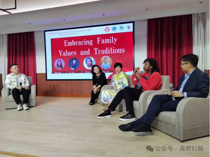 本场沙龙活动主题为“中国及海南传统‘家’文化的继承与发扬”。我校女留学生Mylène作为嘉宾分享了自己在家庭教育方面的见解,认为由于母亲与孩子关系联结更加亲密,所以母亲对于孩子的性格、生活方式以及价值观的形成方面有着潜移默化的的影响。而对于主持人提出的青少年网络成瘾问题,Mylène认为年轻一代乐于使用互联网来指导个人生活,传统价值观逐渐缺失,人们对于电子设备的过度依赖不仅导致失落感和无助感增加,而且产生了人际焦虑和抑郁。因此,在意识到这种危险处境后,要切实做出一些行动来改变现状。正所谓“亡羊补牢,为时未晚”。Mylène的发言得到现场观众热烈的掌声。此次活动彰显了我校女留学生的国际风采,校妇联也将更好地服务我校广大女性师生,为逐梦海南自由贸易港建设贡献巾帼力量。