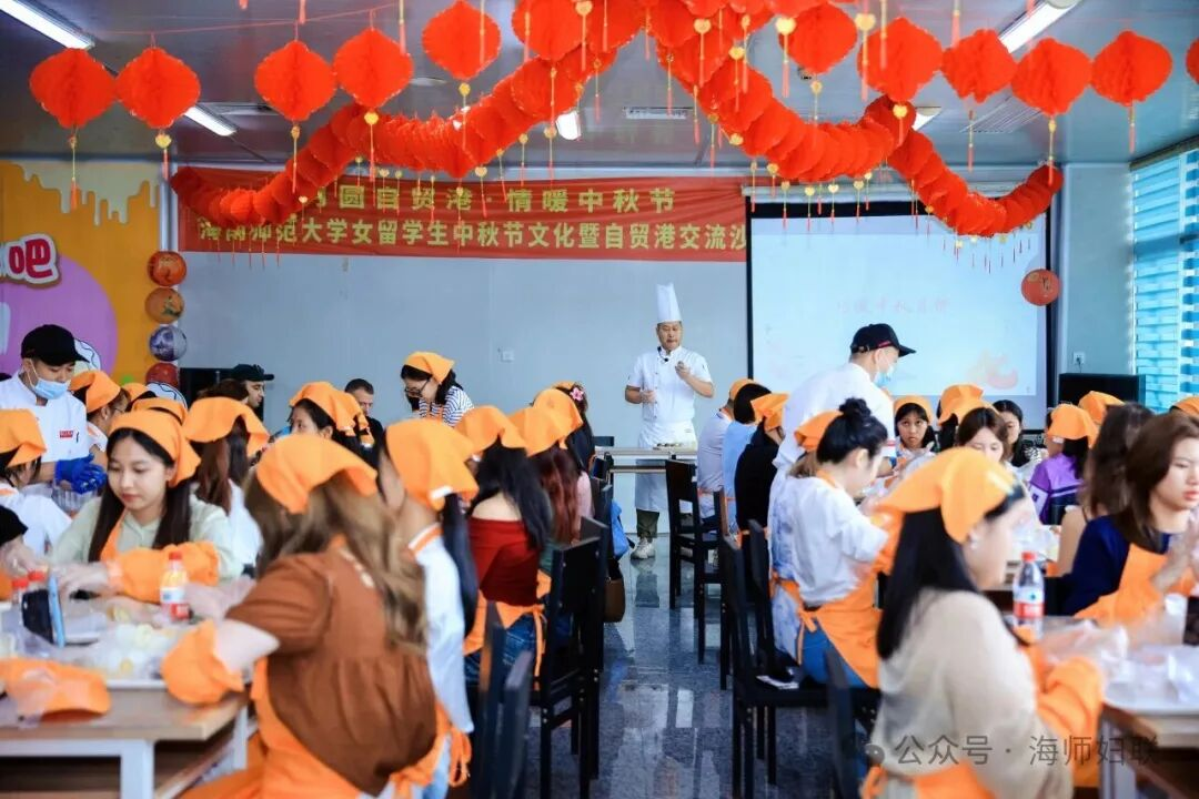 中秋佳节将至,海南师范大学妇联秉着“服务女性、联结文化、赋能发展”的目的,联合国际教育学院组织在校女留学生开展“月圆自贸港,情暖中秋节”中秋节文化暨海南自贸港交流沙龙活动。本次活动共有10余个国家、70余名女留学生参加,主要包括体验学做月饼、中秋文化知识竞答和讲解、海南自贸港政策微宣讲等内容。让女留学生在指尖创作与味蕾体验中触摸中秋“团圆共享”的文化内核,在游戏互动与歌声飞扬里升腾起对中华文化的认同与情感共鸣;在知识竞答和政策宣讲中深入了解海南自贸港的独特优势与发展机遇,点燃投身自贸港建设的青春热情。同时,也为中外师生搭建起交流的桥梁,促进留学生与中国师生之间的情感联结,为未来融入自贸港建设奠定坚实而深厚的人文基础。