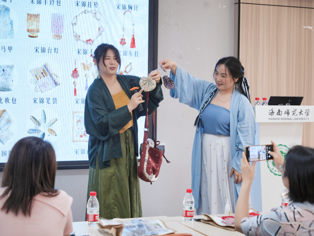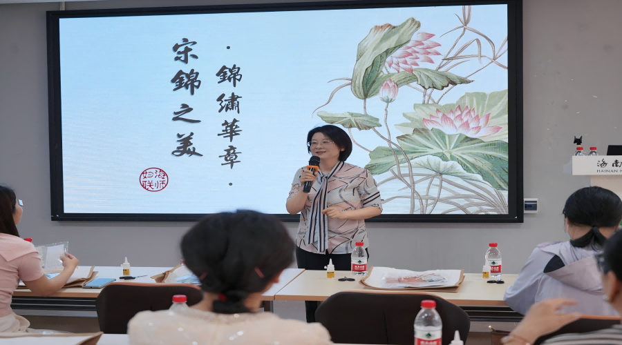 为深化校园美育实践,丰富妇女节活动月内涵,海南师范大学妇女联合会于2026年3月26日在龙昆南校区图书馆二楼校友之家会议室举办“指尖匠心,邂逅宋锦”非遗手作体验专场活动,邀请全校女性师生共同走近被誉为“锦绣之冠”的宋锦技艺,在经纬交错间感受穿越千年的匠心之美。